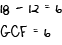 the model shows the equation 18 minus 12 equals 6. beneath the equation is written gcf equals 2 times 3.